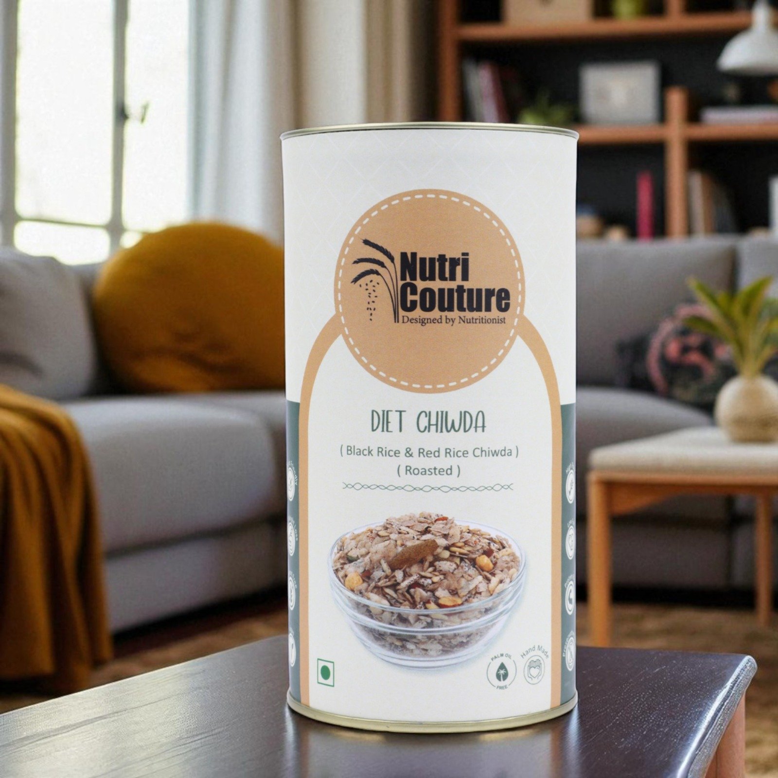 Unlike regular white rice chiwda, Nutri Couture’s Roasted Diet Chiwda is crafted from Red Rice and Black Rice flakes, making it a smarter, more nutritious choice. These ancient grains are loaded with antioxidants, fiber, and minerals, offering a healthier upgrade to your traditional namkeen.