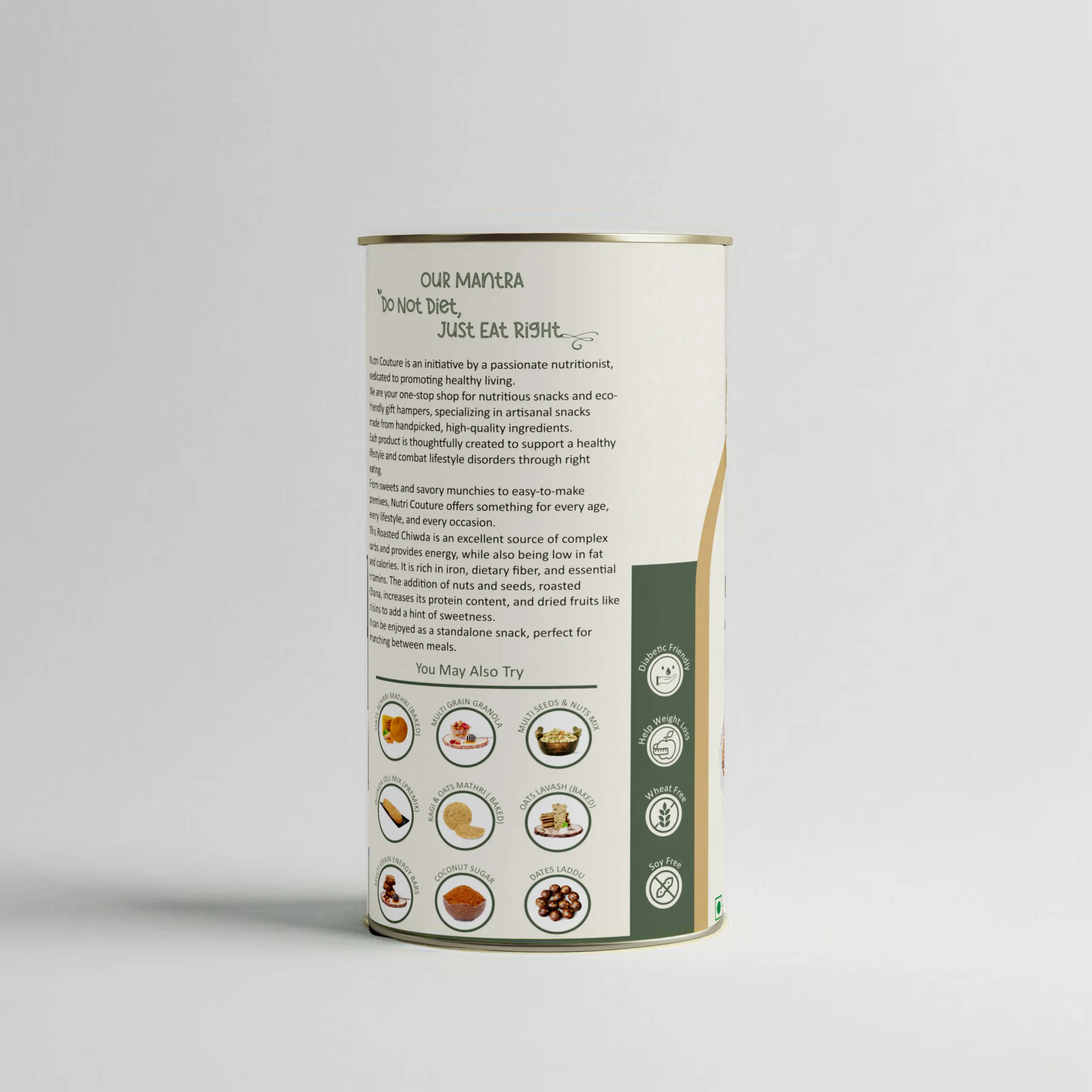 Slow-roasted in cold-pressed olive oil, this chiwda is wheat-free, vegan, diabetic-friendly, and completely free of refined oils, trans fats, and preservatives.