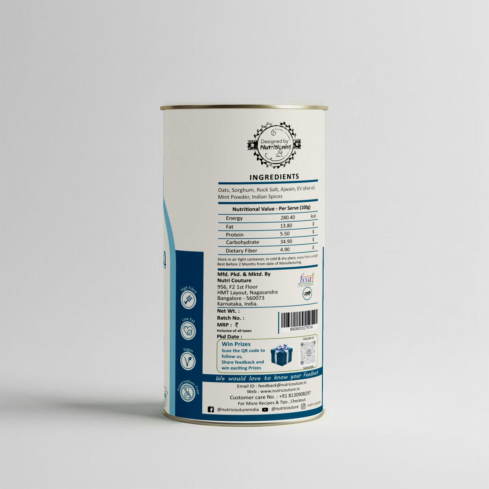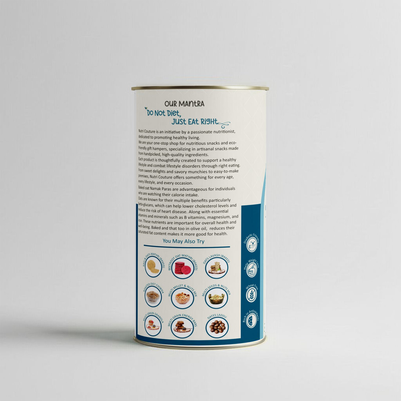 Indulge in your nostalgic snack — reimagined for today’s health-conscious lifestyle. Nutri Couture’s Baked Oat Namakpara is a crunchy twist on the traditional favorite, made using superfoods like oats and sorghum (jowar), seasoned with ajwain and rock salt, and baked to perfection using Extra Virgin Olive Oil.